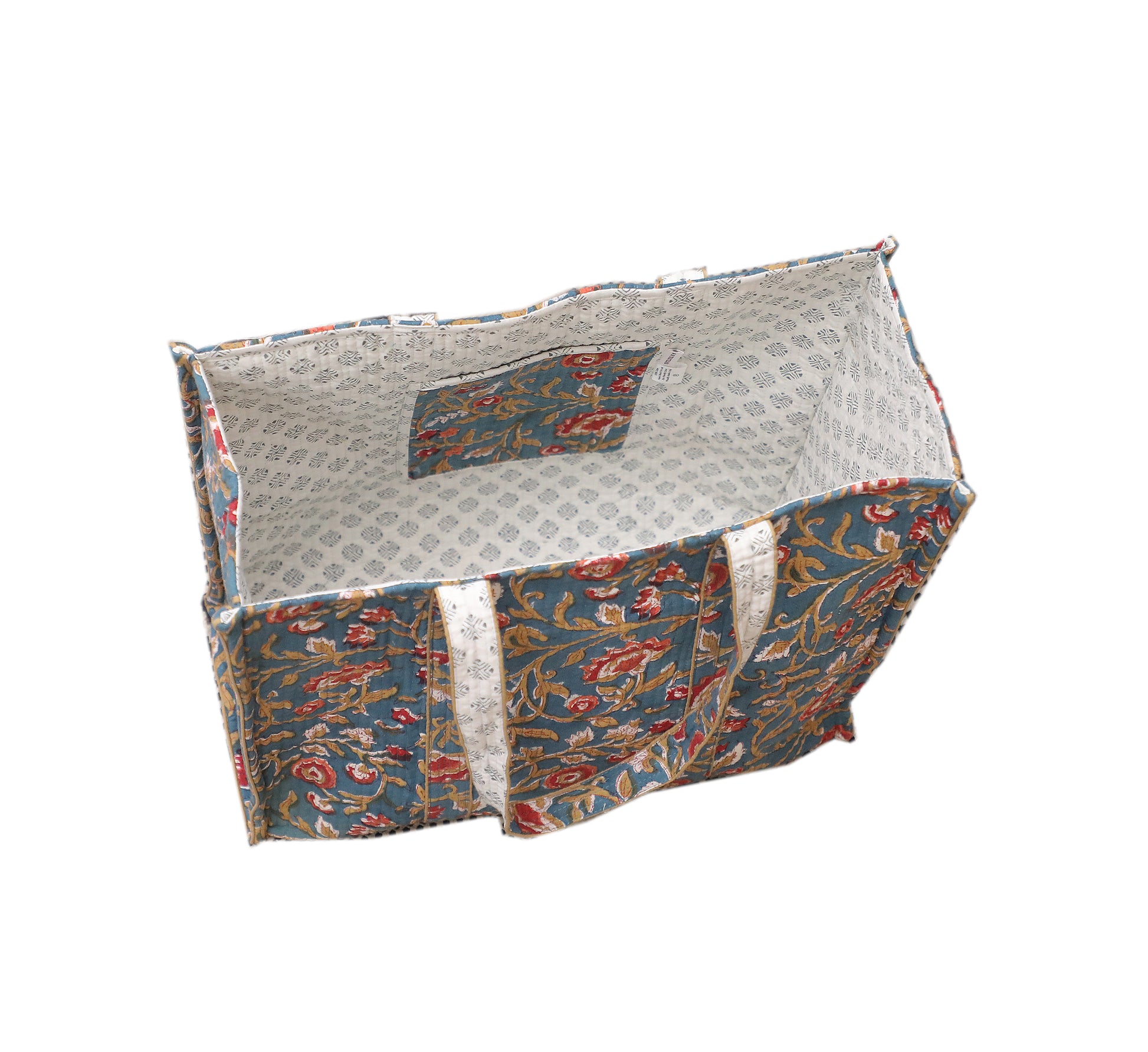 UDAIPUR GARDEN HAND BLOCK COTTON PRINTED QUILTED SHOPPING TOTE BAG