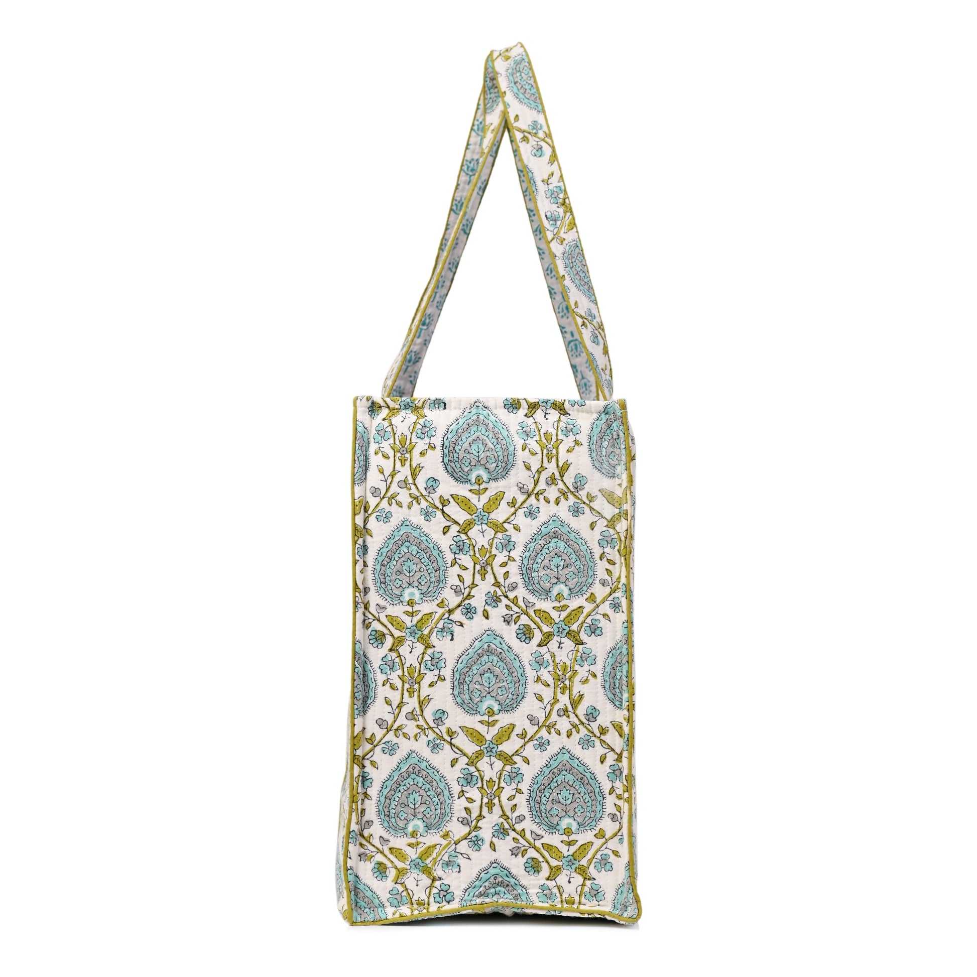 JAIPUR LEAF HAND BLOCK COTTON PRINTED QUILTED TOTE BAG