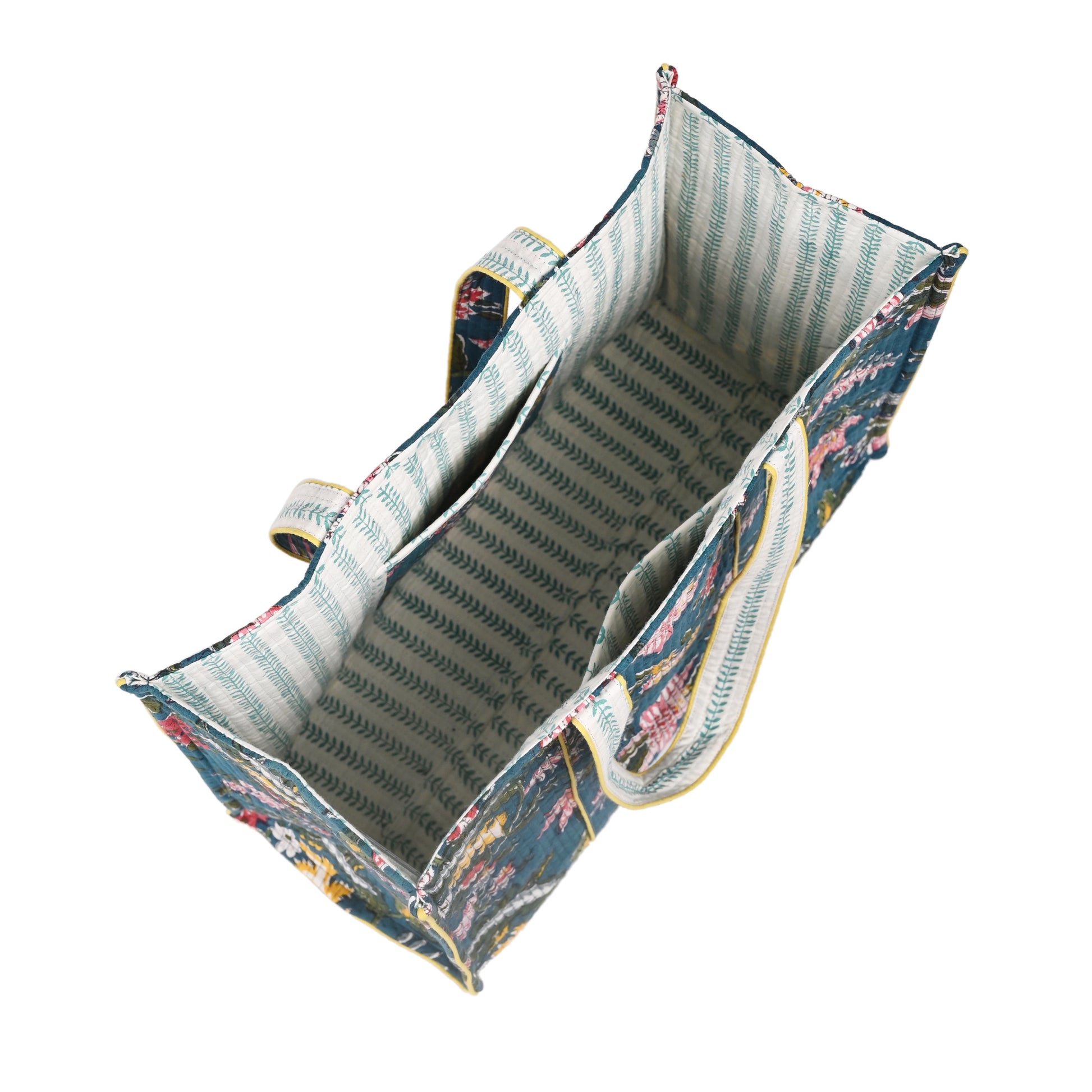 NOCTURNE BLOOM HAND BLOCK COTTON PRINTED QUILTED TOTE BAG